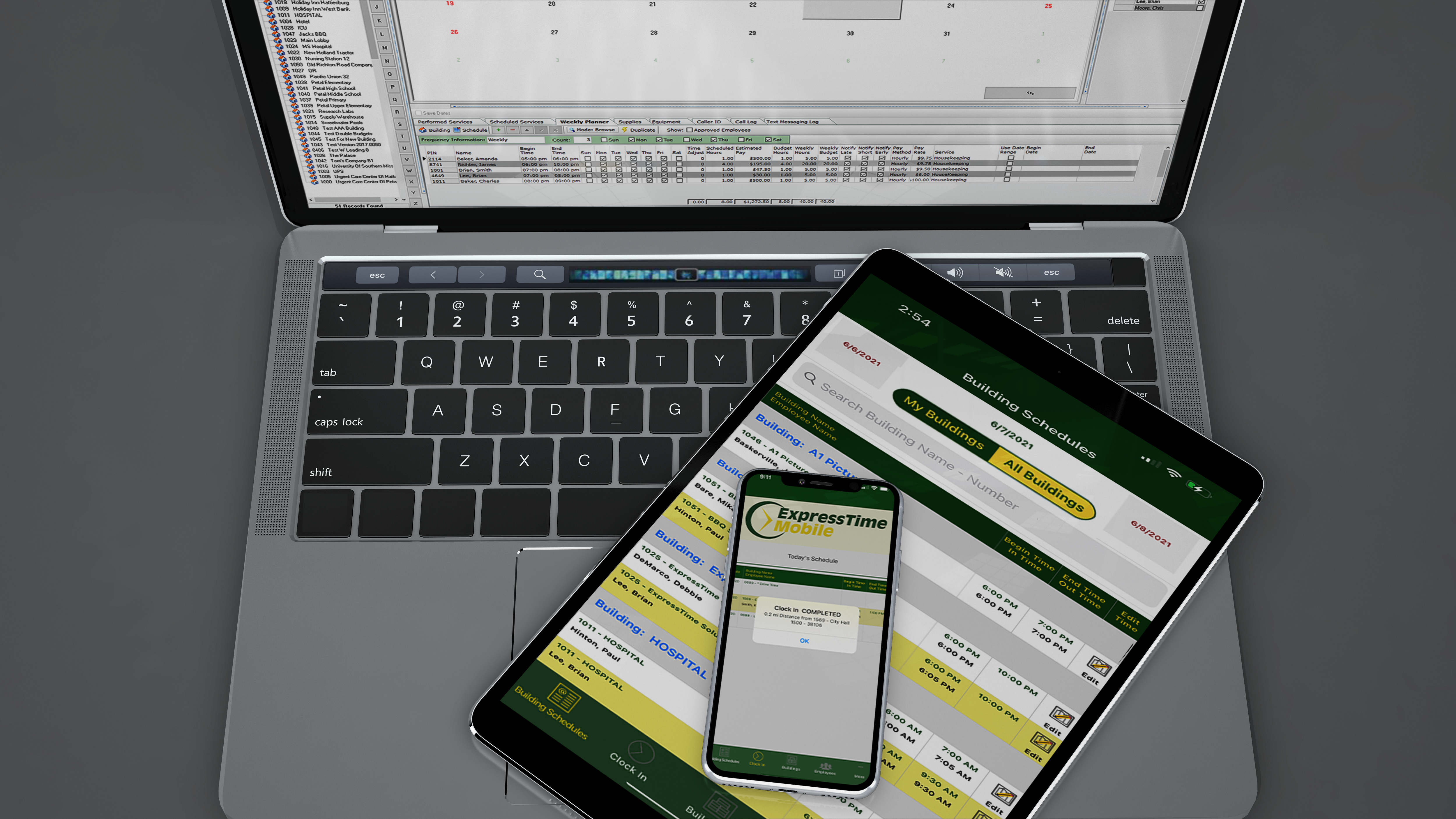 An automated timekeeping system that goes far beyond timekeeping. Take hold of your business by tracking everything from employee work time, supply ordering, budgets and statistics and much more.